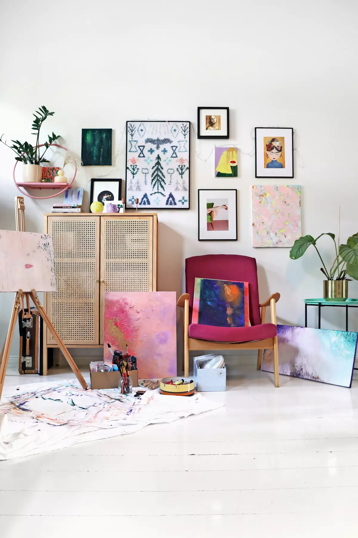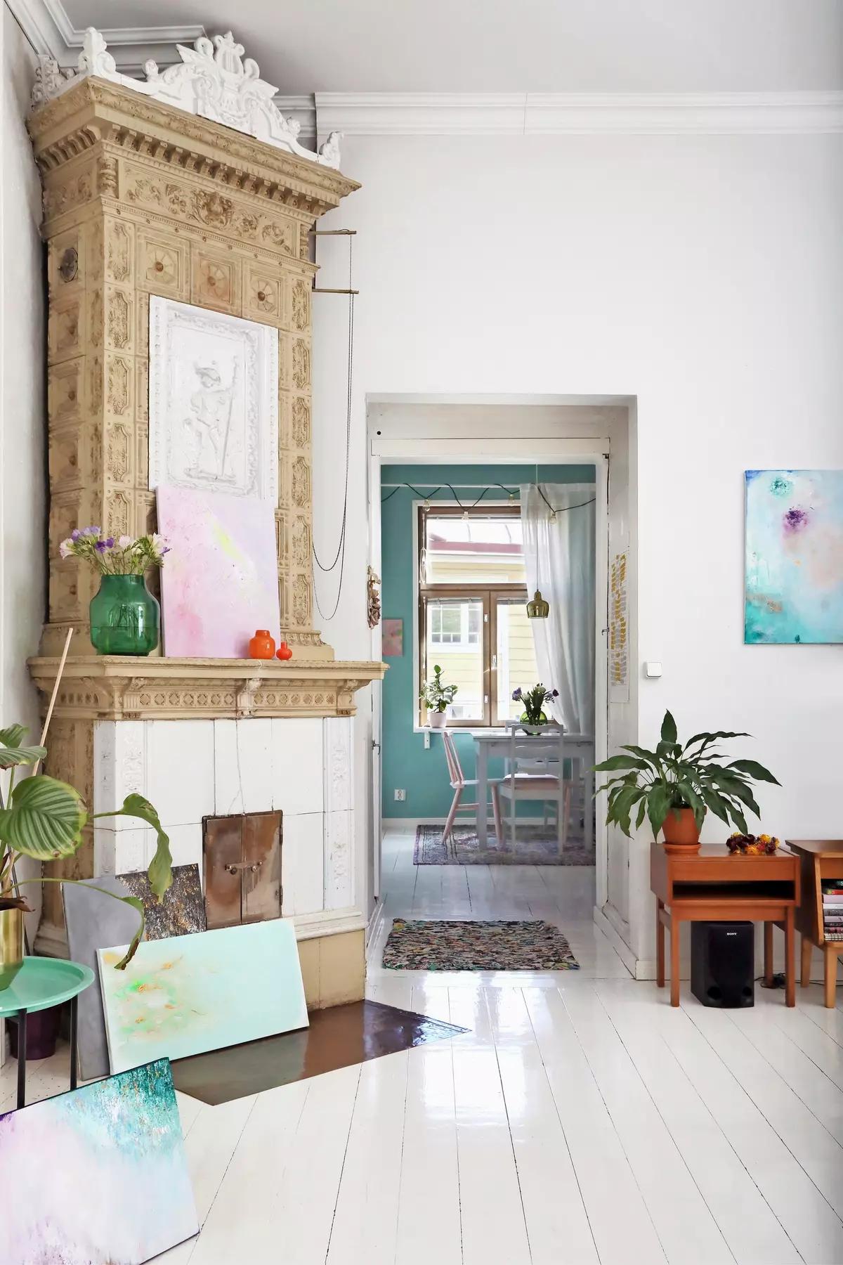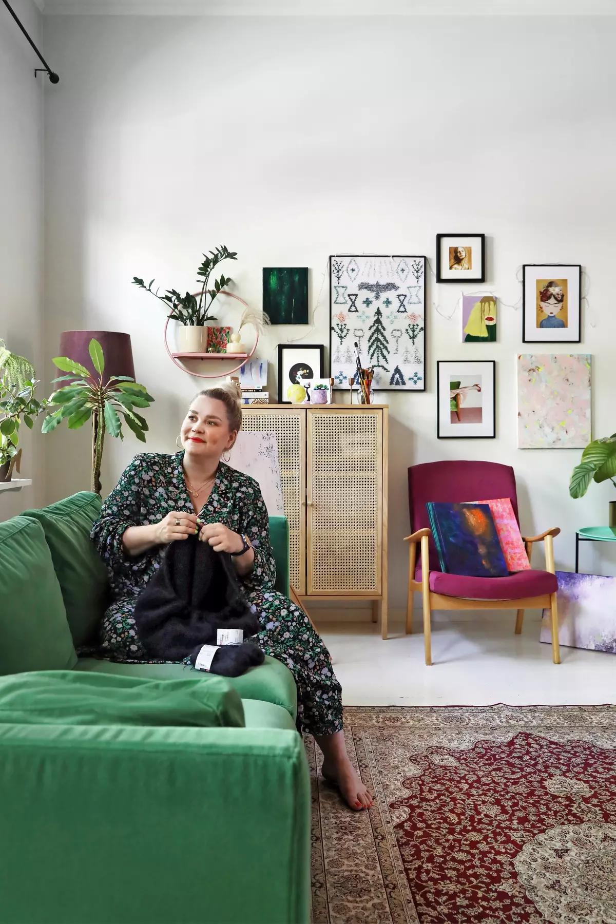 Painting is one of Minna’s hobbies. A few years ago she took a painting course with a local artist, and now her works are part of the décor. Thanks to them, the otherwise minimalist white Scandinavian apartment feels colorful and alive.