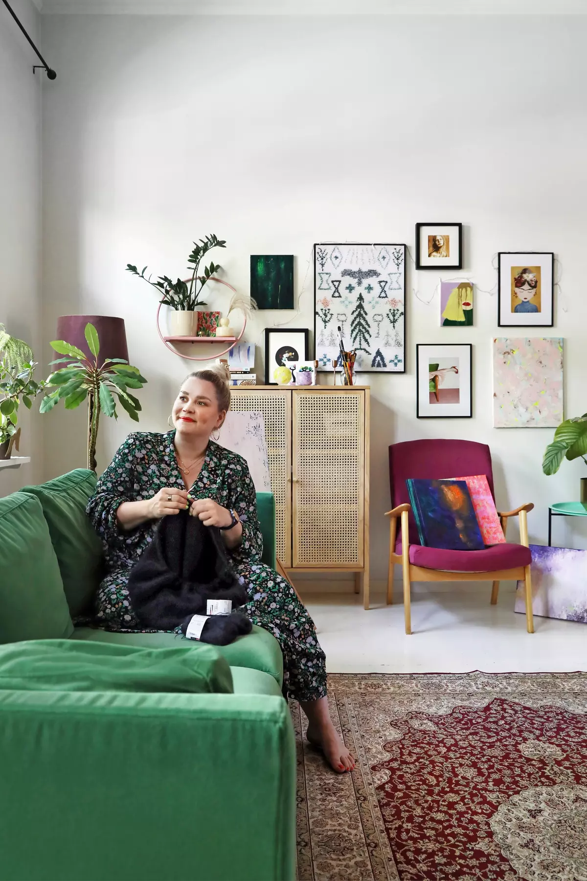One of them is home to 44-year-old Minna Rajala, a stylist and hairdresser from Turku. She moved into the apartment on the city’s outskirts in 2012 and, little by little, has been reshaping the space with vintage and second-hand finds to highlight the house’s special, lived-in atmosphere.