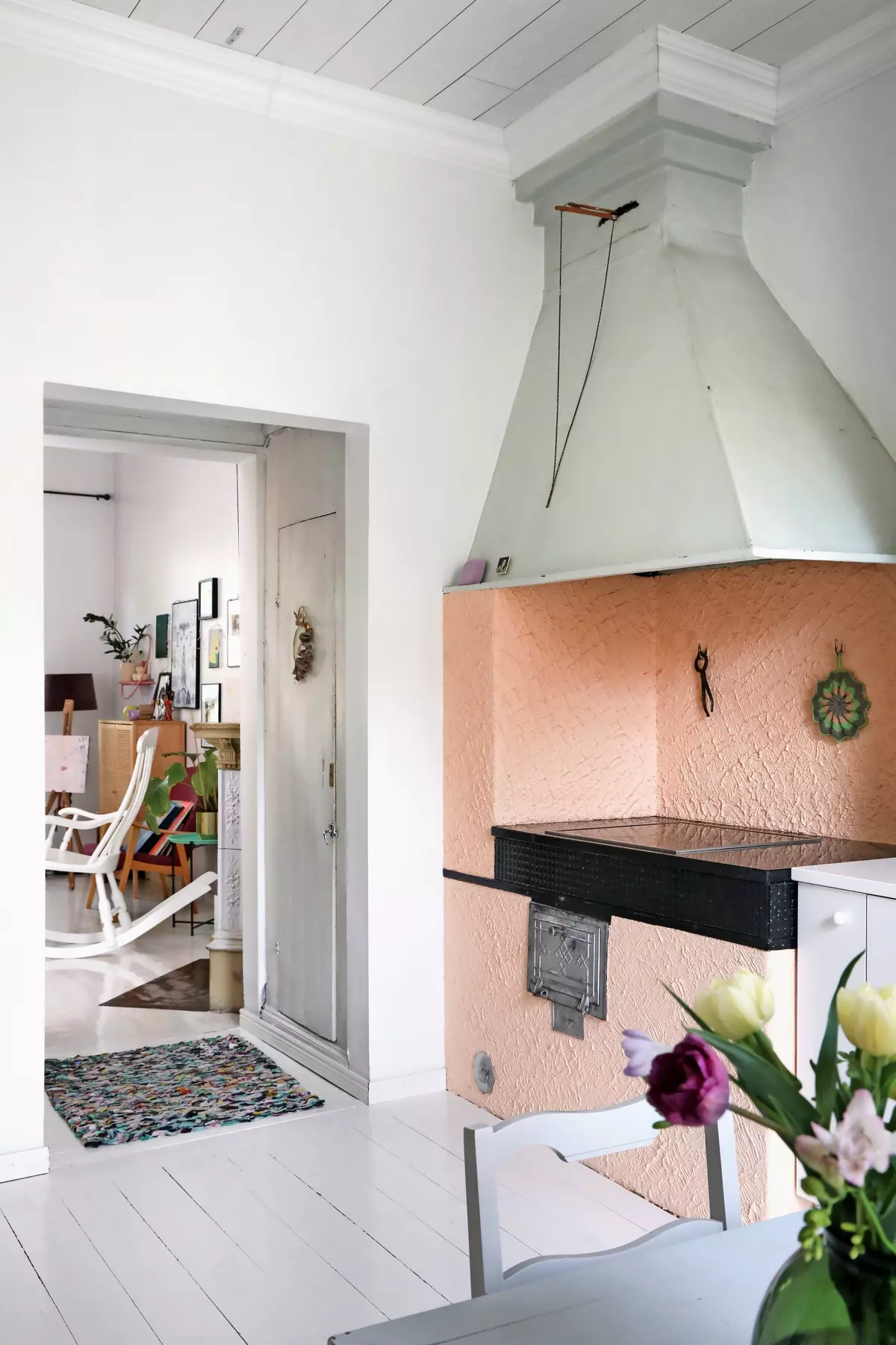 “I’m sad when I see people strip old houses of their character during massive renovations. That historic spirit disappears. I love old doors, windows, and wooden floors. I adore the old cooker hood and the hundred-year-old stove — it doesn’t work anymore, but it’s so beautiful I can’t bring myself to remove it,” Minna says about her 1910 apartment.