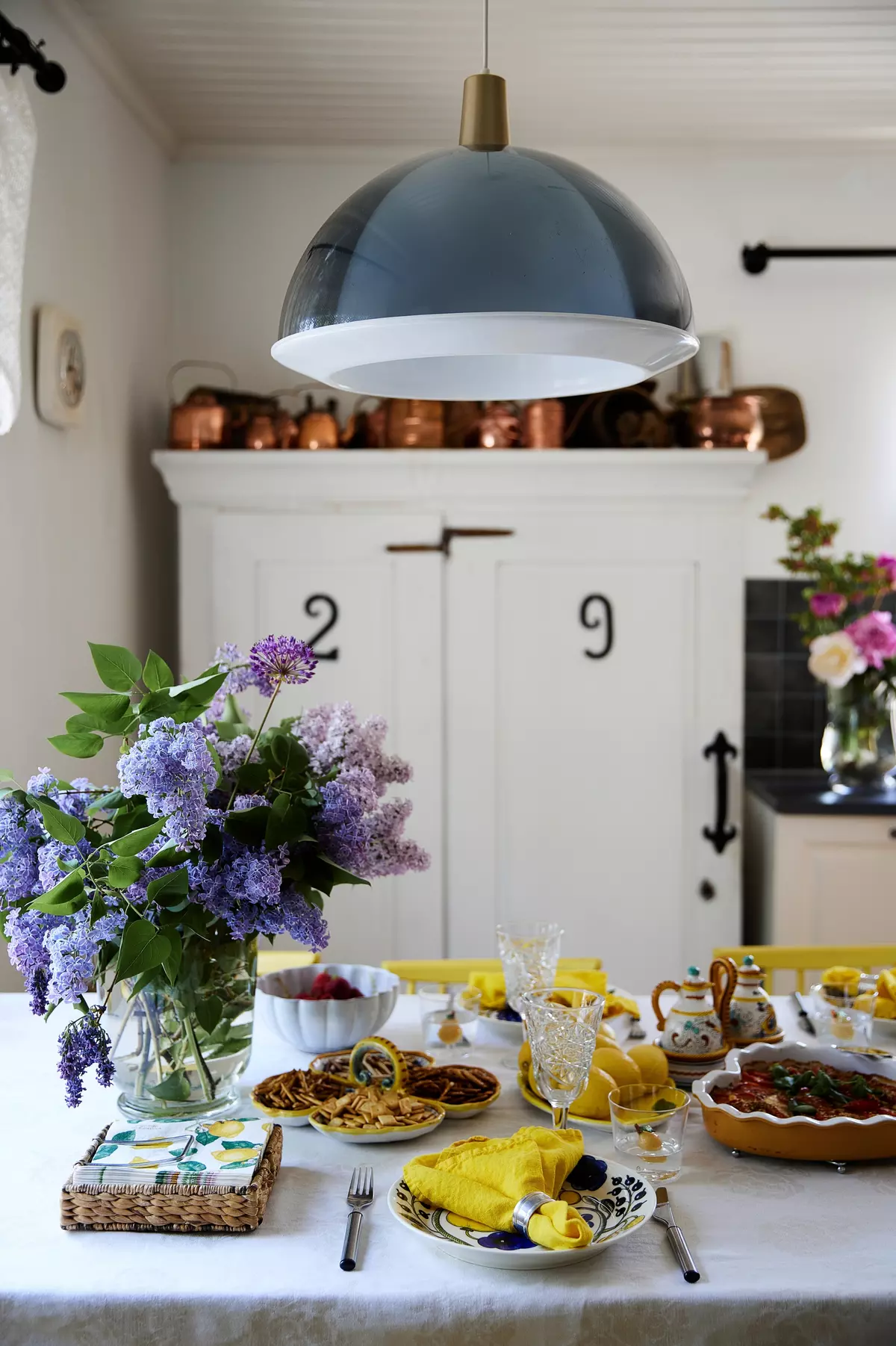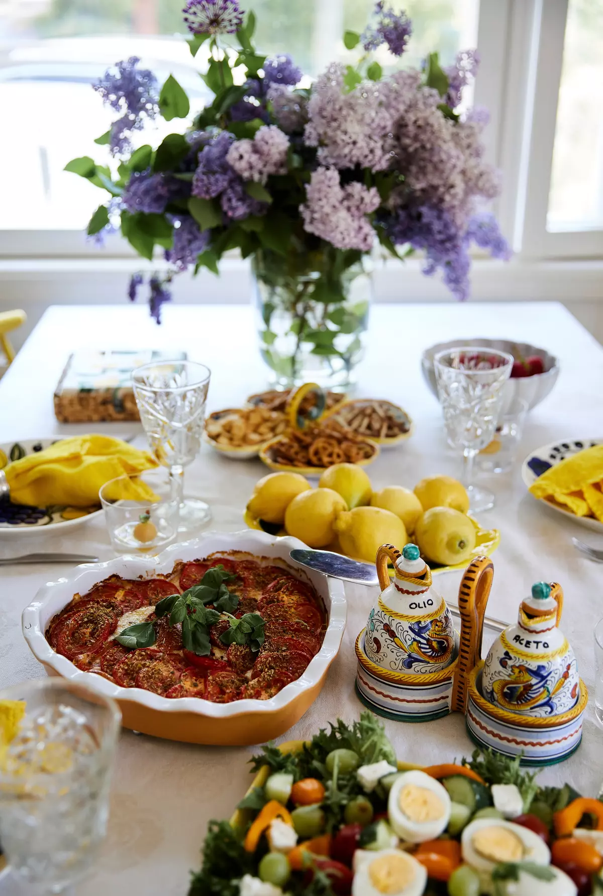 When guests arrive, Sophia always sets a beautiful table. She enjoys laying out a meal, choosing plates and glasses from her large collection, picking napkins and thinking through the little details. In summer she uses salt shakers shaped like lemons and strawberries; in winter she swaps them for others.