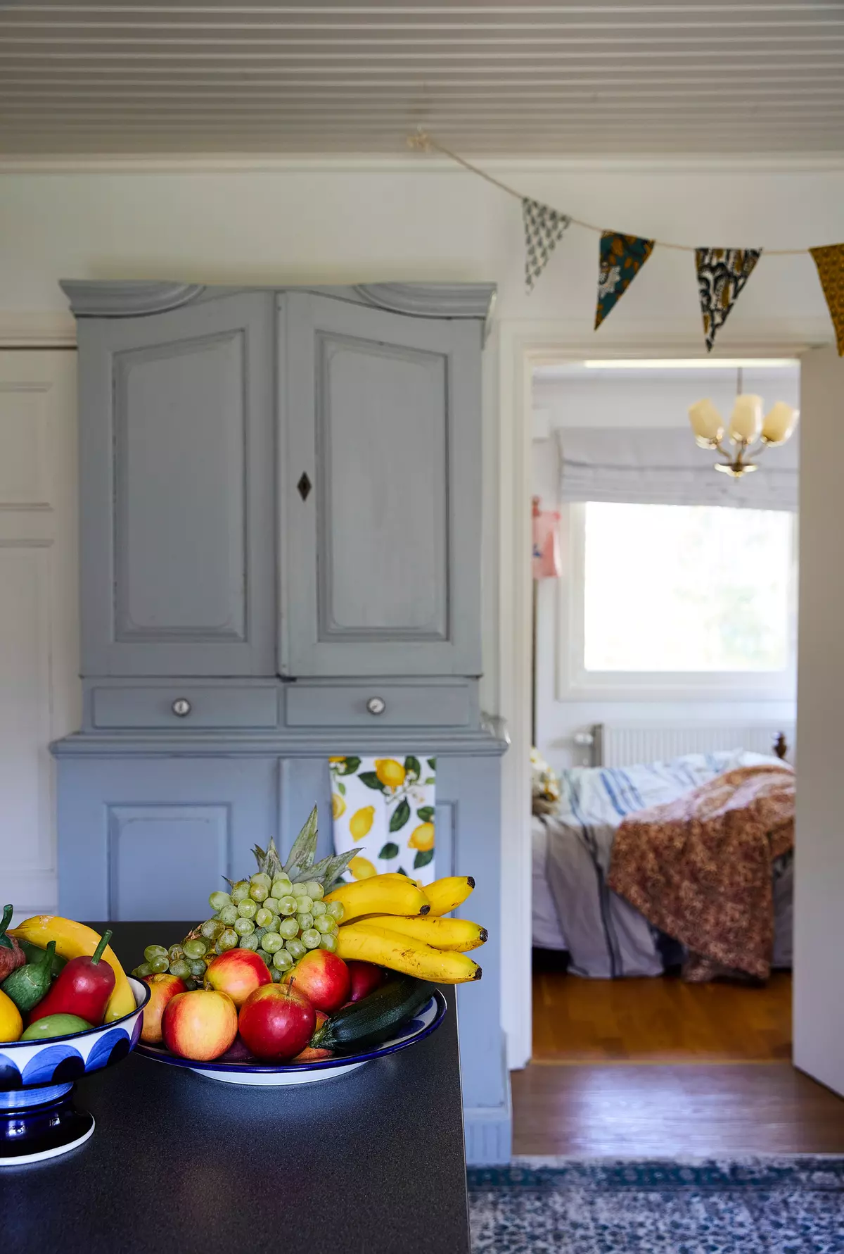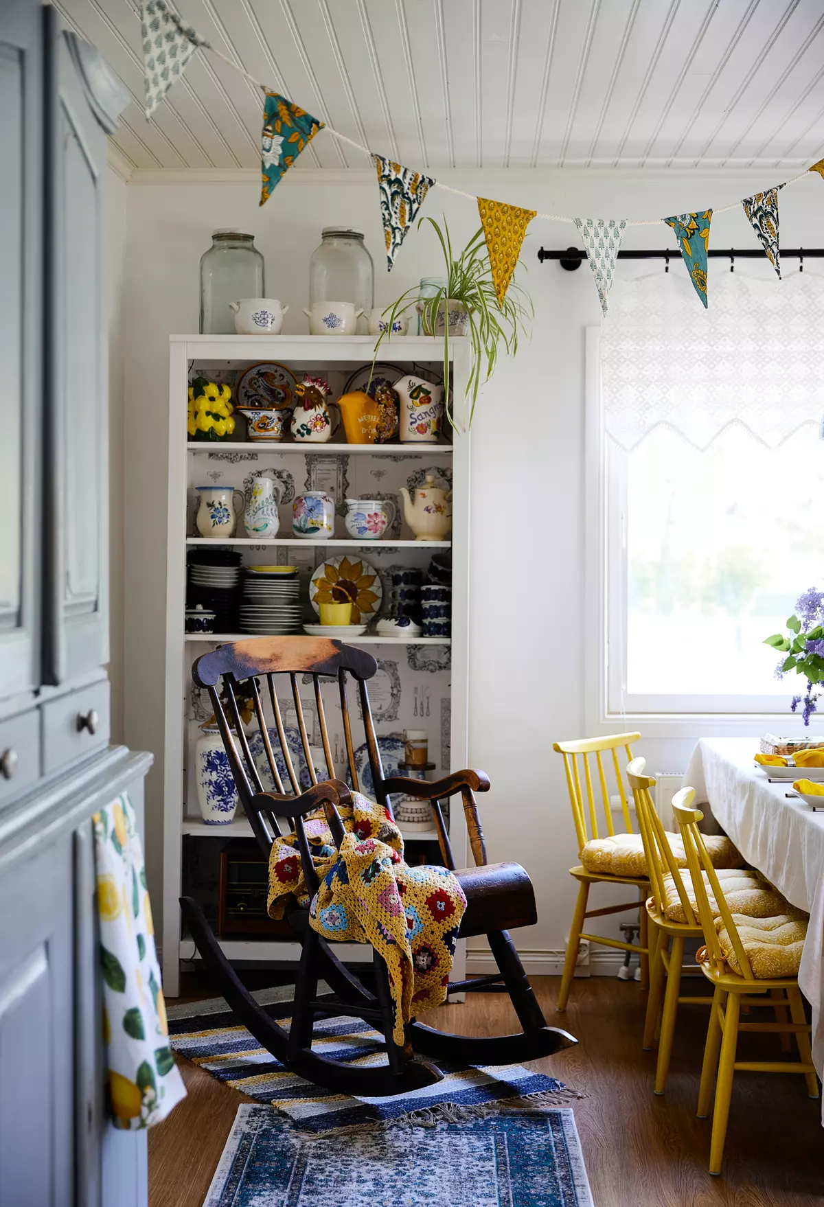 The interior blends inherited furniture, secondhand finds from flea markets and everyday mass-market décor in a harmonious way.