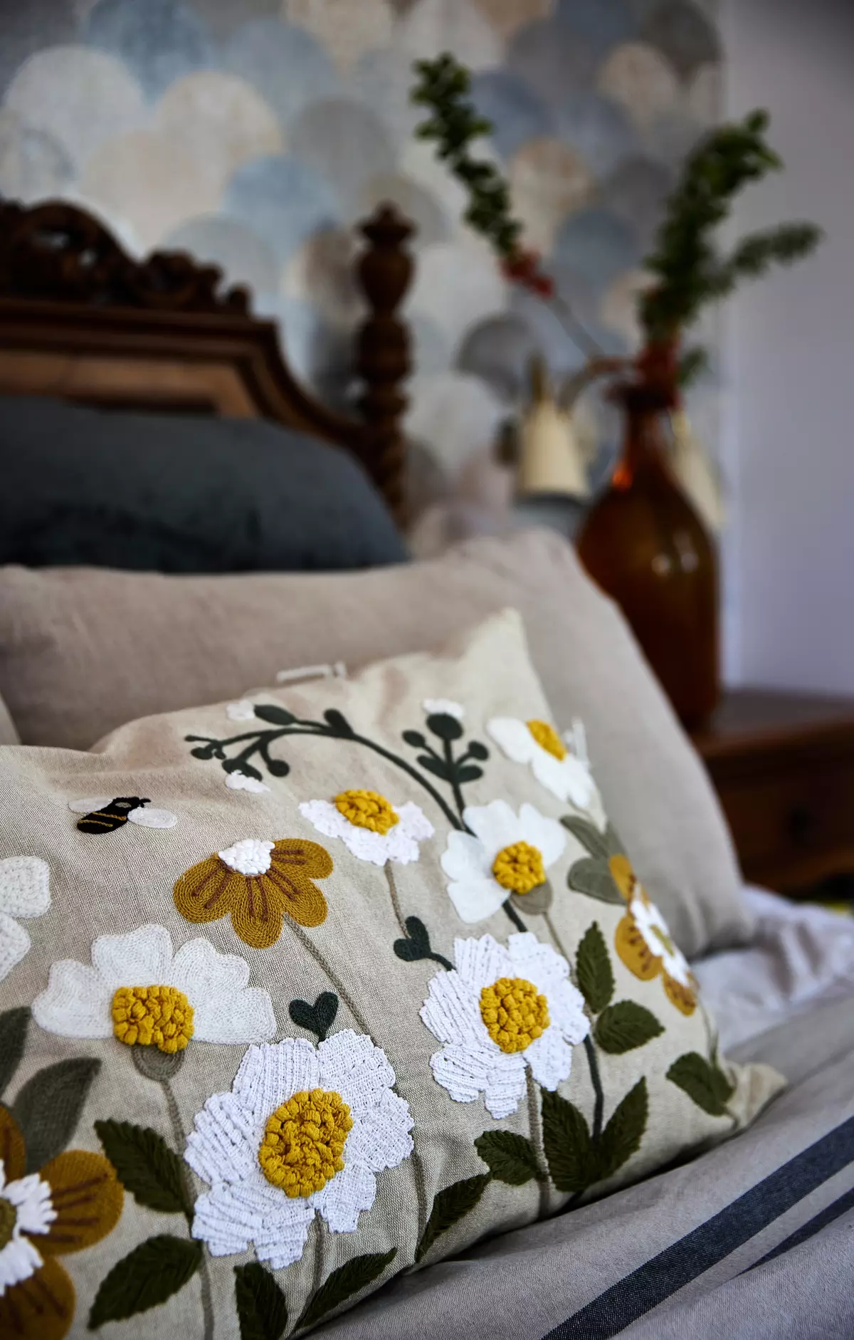 The embroidered cushion comes from a small shop in Hanko. It fits the vintage interior perfectly. You wouldn’t guess at first that the cover is from a regular shop — it looks like a family heirloom.