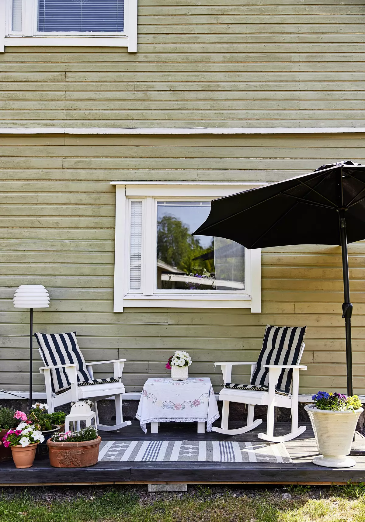 The homeowner is 54-year-old Sophia Boleckis, HR director at Wärtsilä. Sophia lives in the house with her two sons — she occupies the first floor, and the children share the second floor.