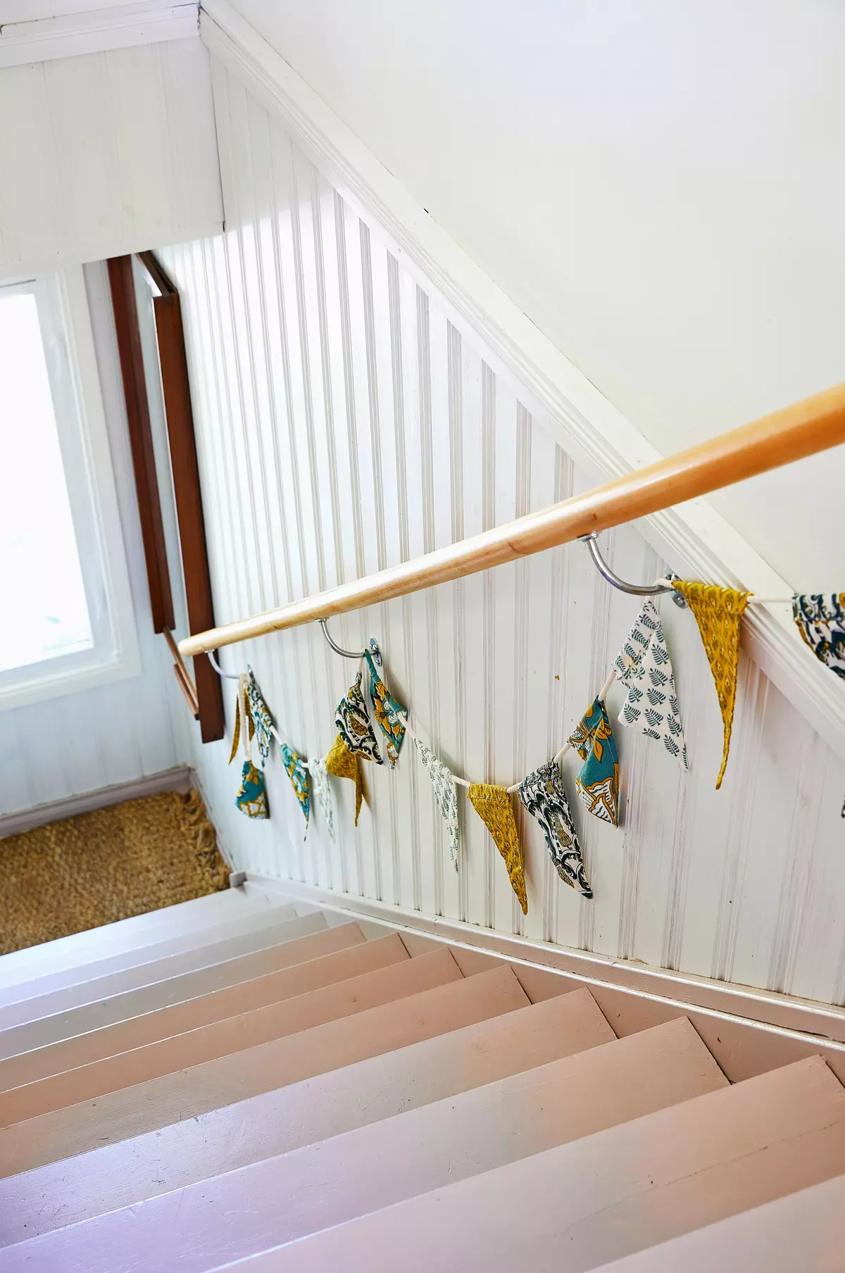 A colourful bunting with little flags sets the tone right at the entrance. Sophia sewed those triangles herself from fabric scraps.